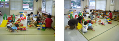 障がいをもつ子どもたちも、もたない子どもたちも、共にたくさんのおもちゃの中から気に入ったものを選んで、お友達やお母さんたちと一緒に楽しく遊ぶ機会を提供しています。